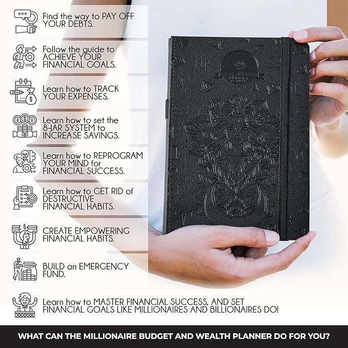 - UNDATED BUDGET PLANNER - Undated budget planner is a deluxe planner & wealth planner showing you how to reprogram your mind to master financial success. A5 Size (5.8 x 8.3 inches), thick paper 100 gsm, inner pocker, financial success road map, 12 monthly planning overviews made in high quality lay-flat binding with 144 pages of impactful budgetting lessons, includes 3 sheets colorful budget affirmations and stickers. The millionaire secrets helps you to find a way to pay off your debts, track your expenses, increase savings, and build emergency fund.