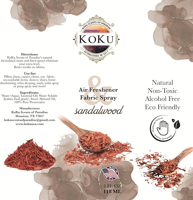 - Essential Oil Spray: Sandalwood air freshener with sandalwood oil room spray that works to neutralizer odors safe with natural way. Healthful benefits of aromatherapy. Our air freshener spray is uses natural essential oils.