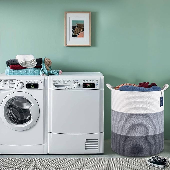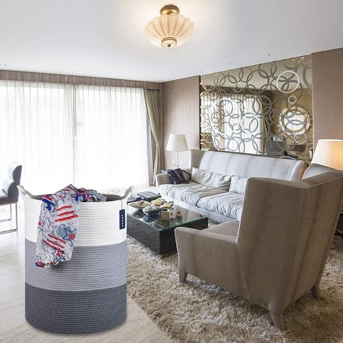 - 【Notes】Laundry basket fold up during transported, it will return to its best shape if filling it with towels or blankets. Fast remove the creases by ironing it. We only offer high quality products so we are sure you will be satisfied with our cotton rope basket. If you have any dissatisfaction, please contact us and We will provide you with a satisfactory solution.