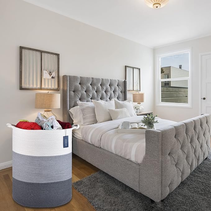- 【Large Size】15.7" x 21.7", Tall blanket basket which perfect for throw pillows, blankets, toys, clothes, Comforter or Cushions. Whether it is for children to help these to develop clean living habits, or as a decorative basket for your friends. With the appearance and practicality, we believe COMSE cotton storage basket perfect as a gift for Birthdays, Festival.