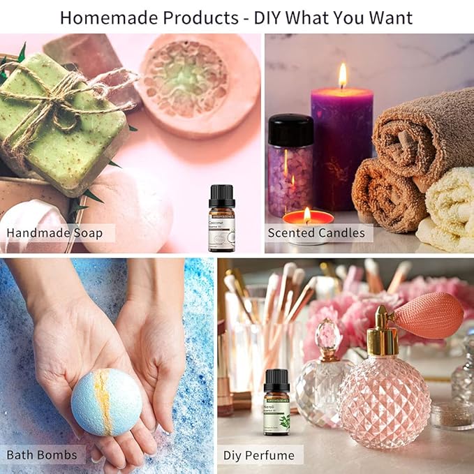 - Versatile Applications: Our essential oils are ideal for aromatherapy and diffusers, air freshening, body care creations, massage blends, scented candles, bath bombs, homemade cleaning products, soap crafting, and more. Enjoy the joy of crafting while experiencing the benefits of essential oils.