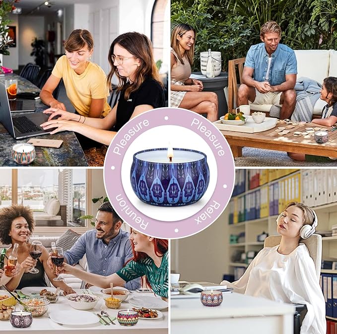 - Long Lasting Time - Each Jar candle contains 2.5 ounces of soy wax and lasts for over 20 hours, you can trim the wick to increase burn time. The complete burning time of 12 scented candles is approximately 240 hours.