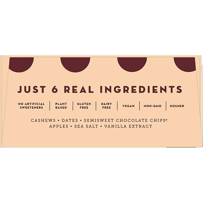 - SIX SIMPLE INGREDIENTS: Made from cashews, dates, semisweet chocolate chips (Fair Trade Certified by Fair Trade USA; at least 20% Fair Trade Certified ingredients), apples, sea salt, and vanilla extract