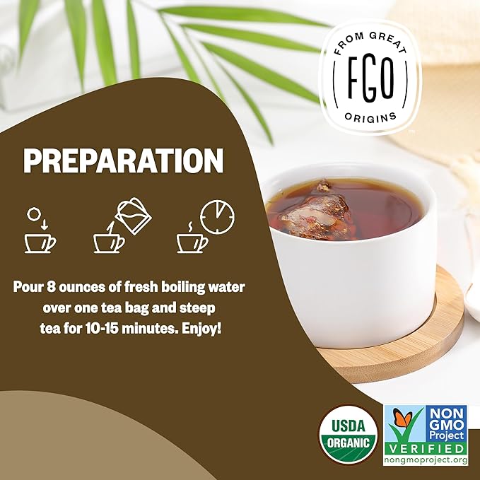 FGO Organic Ashwagandha Tea, 100 Count, Eco-Conscious Herbal Tea Bags, Resealable Bag, Caffeine Free, Packaging May Vary (Pack of 1)