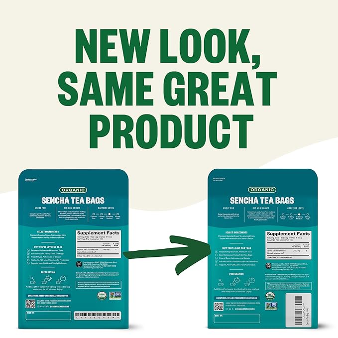 - ORGANIC SENCHA TEA - The tea is filled into tea bags and packed into foil-lined kraft bags in California