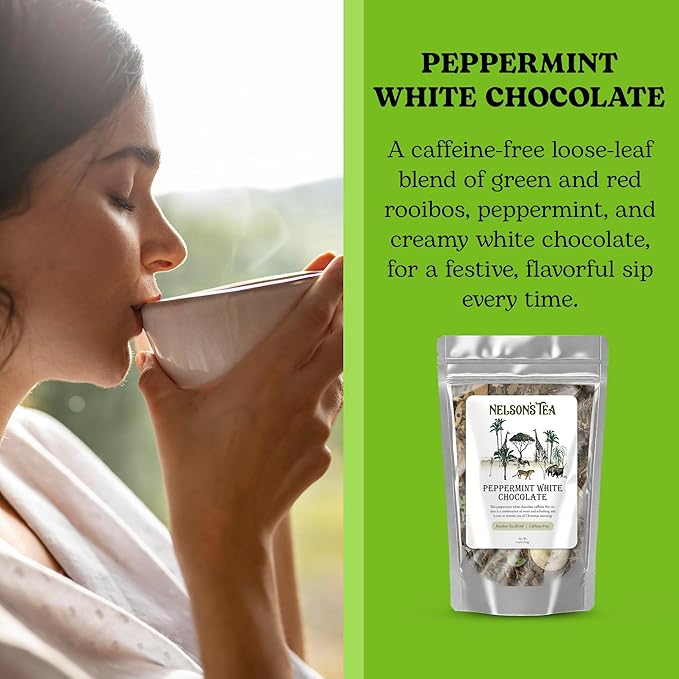Nelson's Tea - Peppermint White Chocolate - Caffeine Free - Loose Leaf Tea with Green & Red Rooibos - White Chocolate Peppermint Tea (4 oz)