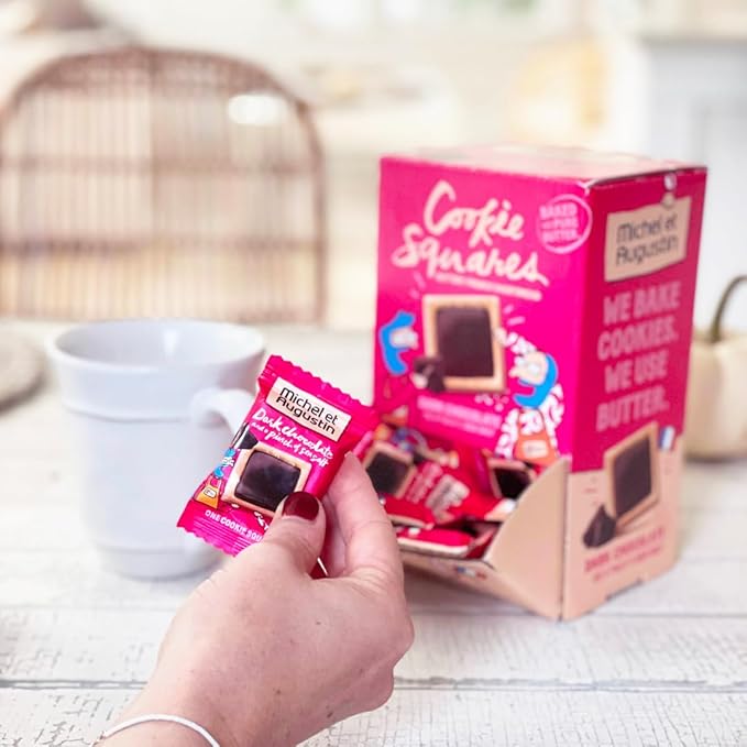 Michel et Augustin Cookies, Individually Wrapped Snacks, Changemaker Gift Box, Dark Chocolate & Sea Salt Shortbread, Bulk Snacks, 40 French Butter Cookies per Box
