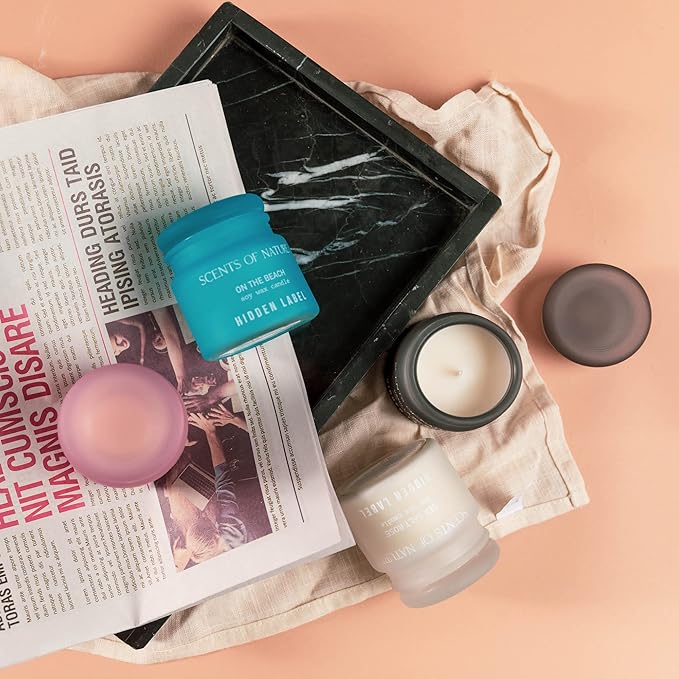 - 【Small Candles with Cute Glass Jars】The cute small candy colored glass jars in our candle sets make people happy easily, Frosted glass adds a touch of elegance and ideal balance between light and privacy. Each candle features a portable 3oz size, burns for 20-25hours, perfect for bathroom, travel, office.