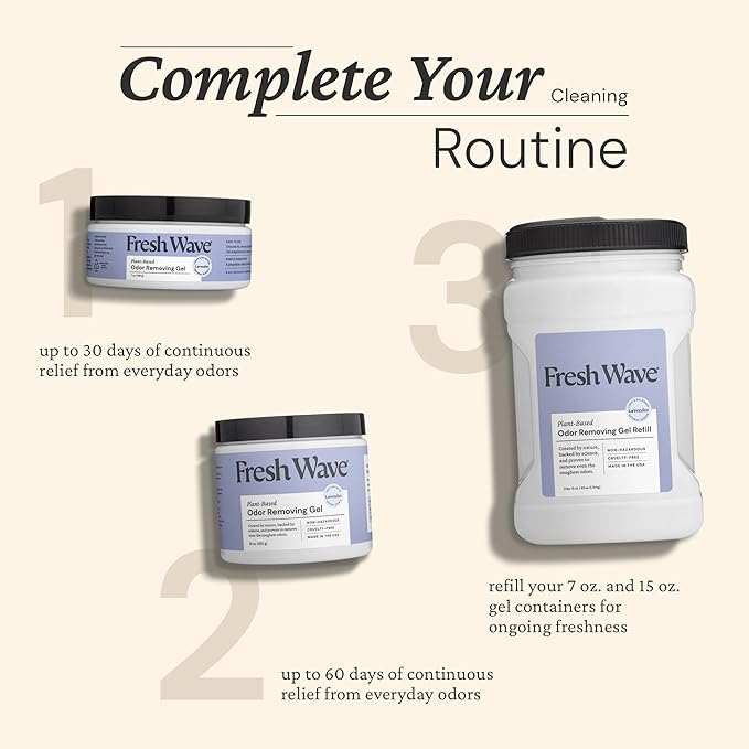 Fresh Wave Lavender Odor Removing Gel, 15 oz. & 7 oz.| Safer Odor Absorbers for Home | Natural Plant-Based Odor Eliminator | Every 7 oz. lasts 30-60 Days | For Cooking, Smoke, Trash & Pets