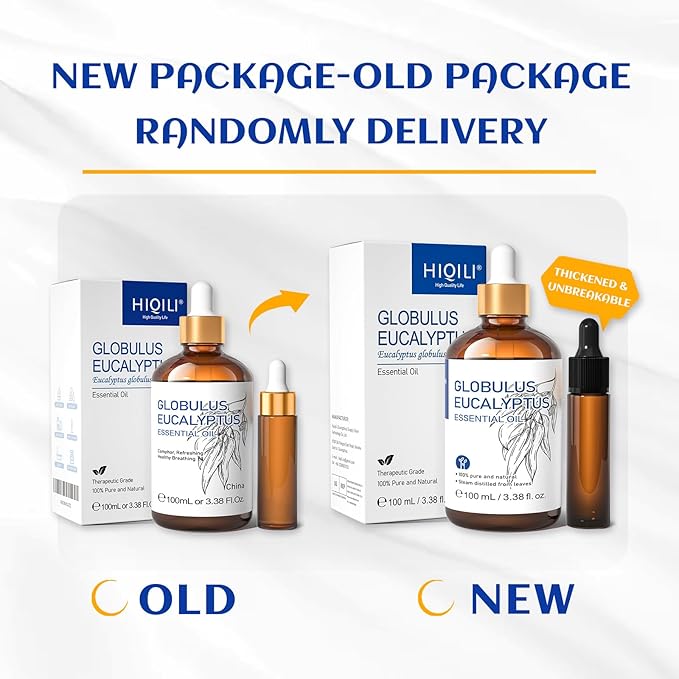 HIQILI 100ML Eucalyptus Essential Oil for Spray, Diffuser & Skin, 100% Pure Undiluted - 3.38 Fl Oz