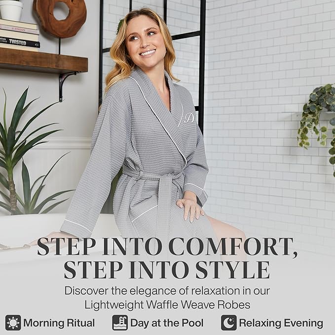• PREMIUM WAFFLE WEAVE DESIGN - Experience spa-level comfort with our lightweight waffle weave bathrobe for women. The unique waffle texture provides excellent absorbency while staying breathable and quick-drying. Ideal as a towel robe after shower or bath.
