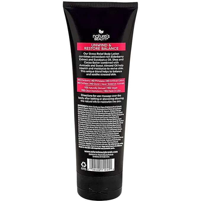 Nature's Beauty Elderberry Eucalyptus Stress Relief Body Lotion Multi-Pack - Lightweight, Non-Greasy Restore Moisturizer, Made w/Shea Butter, Avocado Oil and Sweet Almond Oil, 8 oz (2 Pack)