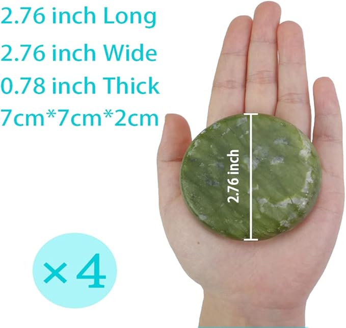4Pcs Hot Massage Stones Set Natural Green Jade Heated Warmer Stone for Spa Massage (7 * 7CM)