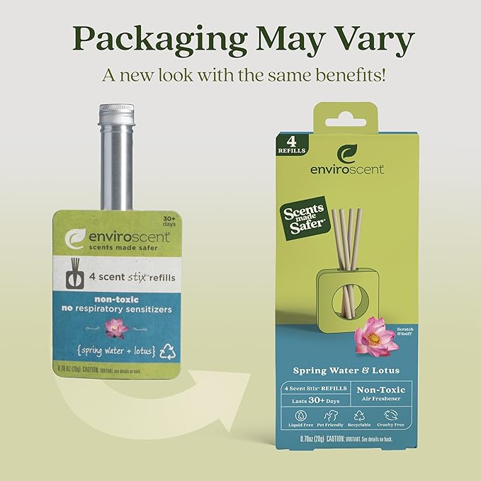 Enviroscent Non-Toxic Air Freshener for Home (Spring Water & Lotus) Essential Oil Diffuser | Home Fragrance Last Over 30 Days | 8 Scent Stix Refills