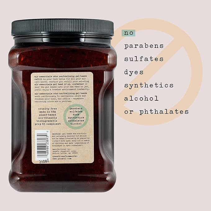 - MADE WITH PURE ESSENTIAL OILS - Air Essentials Air Freshening & Odor Neutralizing Gel Bead Refill contains only plant derived ingredients and a blend of pure essential oils. Each jar provides a pleasant fragrance that does not overwhelm the senses. The Gel Beads will work 24/7 for up to 60 days in up to 400 square feet.