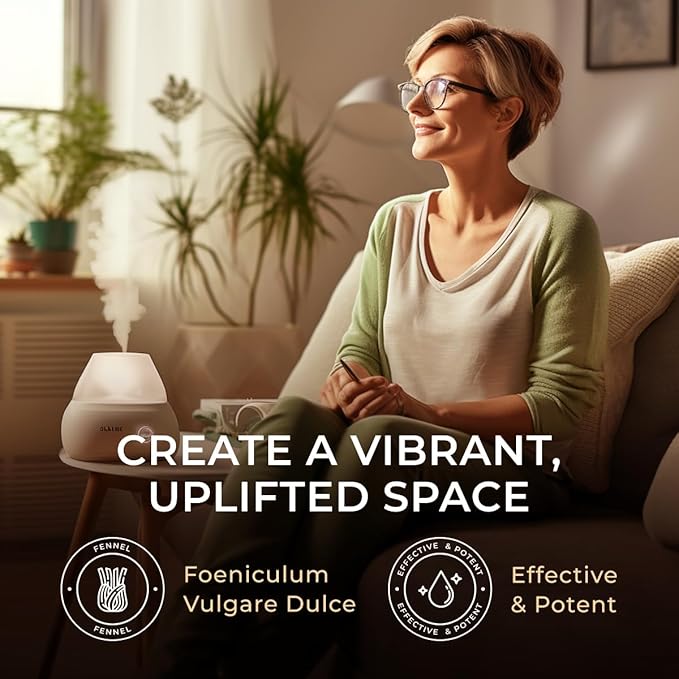 - Fennel essential oil for diffuser & candle making scent. Fennel oil evokes a sweet and spicy scent with earthy undertones, perfect for creating a joyful and refreshing environment in any space. Diffuse 2-3 drops in an essential oil diffuser to enjoy.