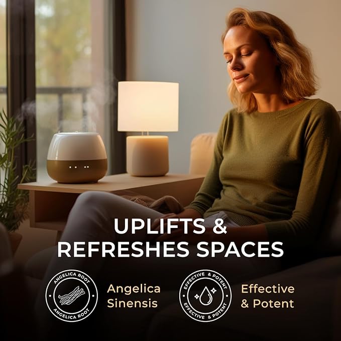 - An earthy & uplifting scent for diffuser. Angelica essential oil for diffusers refreshes surroundings with its complex aroma with a complex aroma of woody undertones. Diffuse 2-3 drops of angelica root essential oil diffuser for 30 minutes.