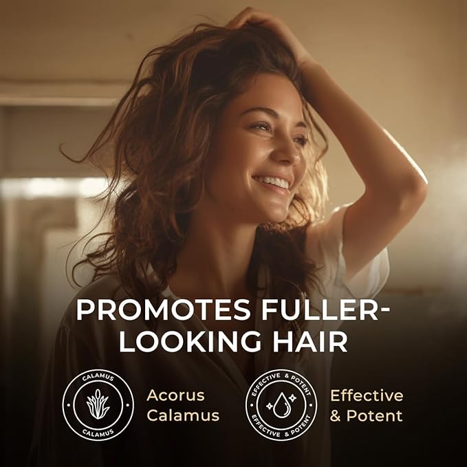 - CHERISH YOUR HAIR. Exuding a warm woody aroma calamus essential oil for hair works to cleanse the scalp and promote a balanced revitalized appearance. Mix 3-4 drops of calamus oil essential for hair with carrier oils and gently massage into scalp