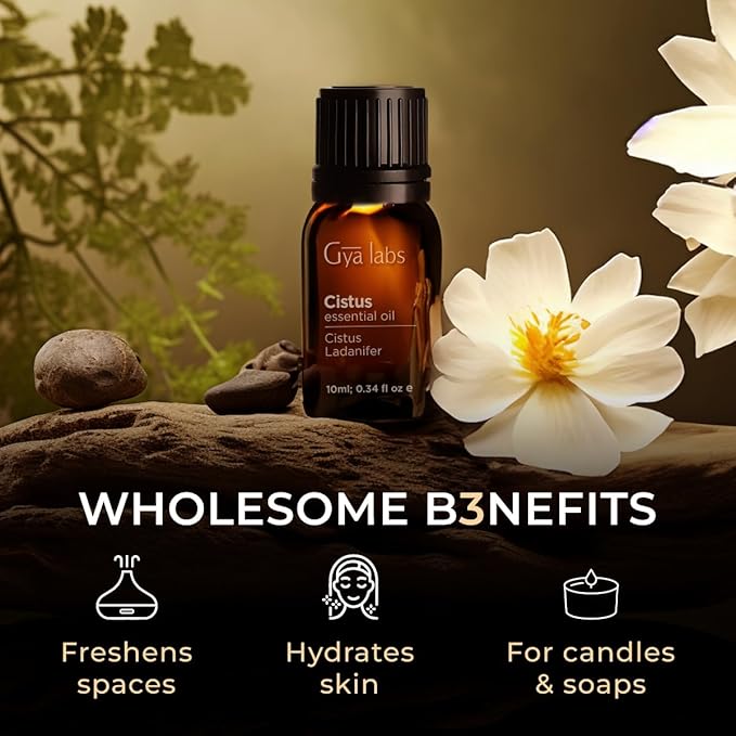 Gya Labs Cistus Essential Oil - 0.34 Fl Oz - for Hair, Skin, Diffuser, Aromatherapy & DIY Candle Making Scent