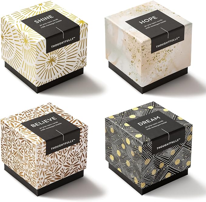 - THEME – DREAM BIG: Included in this pack are 4 boxes of ThoughtFulls - 1 box of Shine, 1 box of Hope, 1 box of Believe, and 1 box of Dream. Every box features 30 cards, each with a unique quote to offer inspiration to live the life you imagine. Share with friends, loved ones, family, or anyone who could use a reminder that anything is possible.