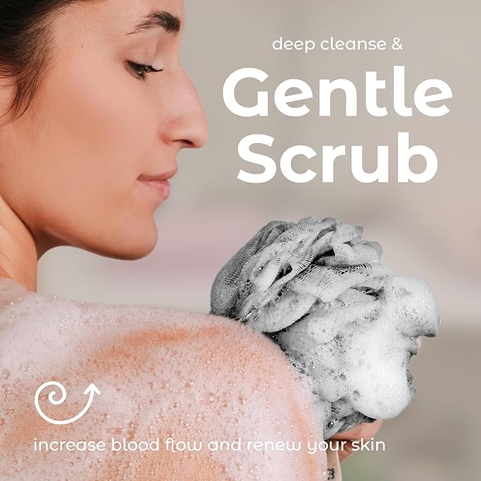 - PREMIUM EXFOLIATING LOOFAH – Indulge in a luxurious bath time with our premium quality loofahs. Our finely woven mesh with a higher cell count gently exfoliates, leaving your skin soft and smooth. The strong knot design and high-quality materials ensure a long-lasting bath sponge experience