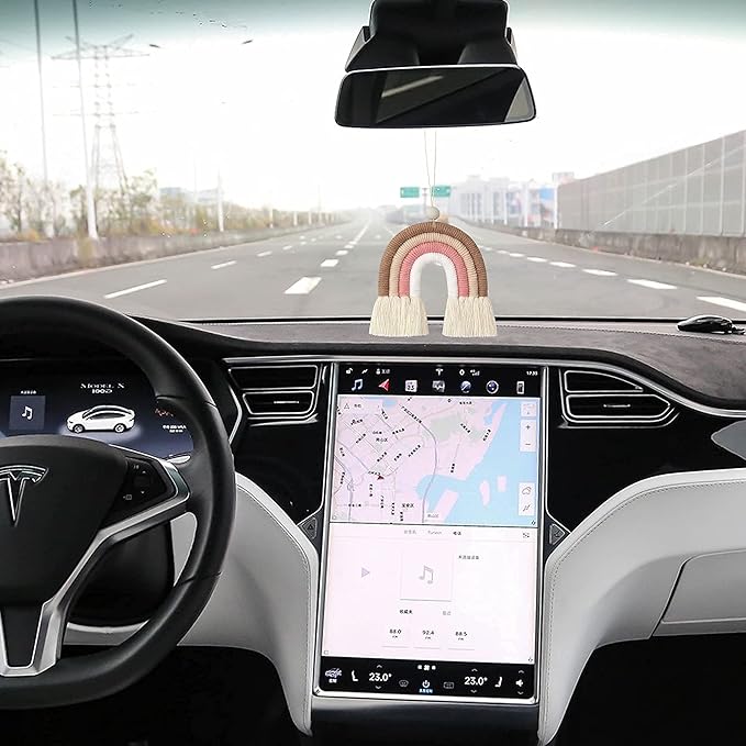 BOHO GARDEN Macrame Bohemian Rainbow Charm - Essential Oil Diffuser for Cars, Baby Nursery, Childrenās Bedroom & Home Decor - Colorful Decorative Hanging Air Freshener & Accessories - 3.5x4 - Sienna