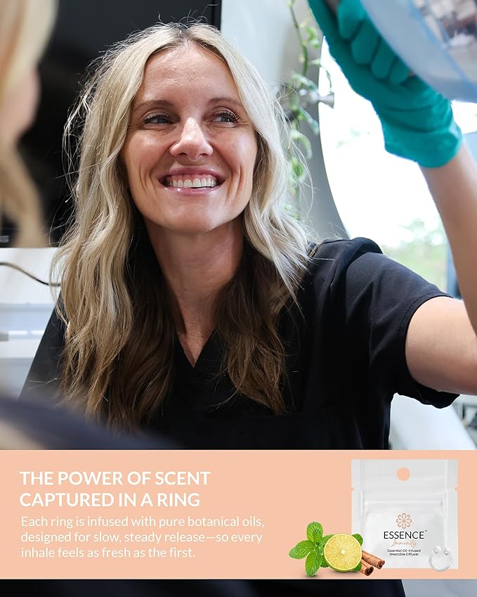 - INFUSED WITH 100% PURE ESSENTIAL OILS – Each ESSENCE nose diffuser ring is infused with high-quality essential oils using advanced scent-retention tech, giving you long-lasting fragrance all day.