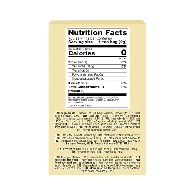 VAHDAM, Jasmine Green Tea Bags (100 Count) Med Caffeine, Non GMO | High Grown Green Tea Blended w/Pure Jasmine Flowers | Resealable Ziplock Pouch