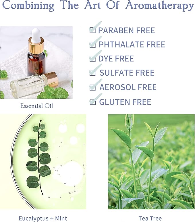 - NATURAL PLANT ESSENTIAL OIL: Pure essential oil of eucalyptus, mint and tea tree extracted from plants, the wooden smell can put you in a good mood