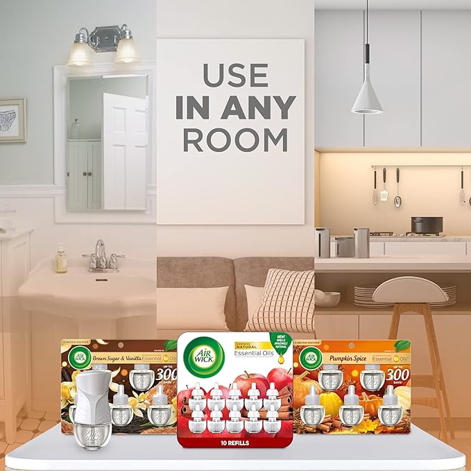 Air Wick Plug in Scented Oil Refill, 5ct, Bonfire and Crisp Fall Air, Essential Oils, Air Freshener Fall Scent, Fall décor