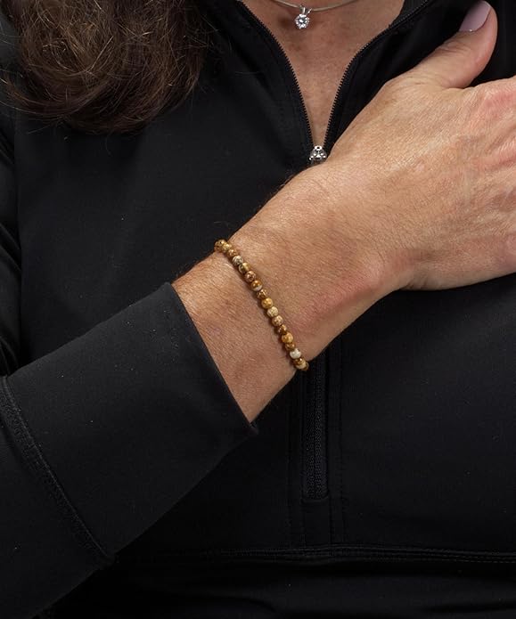 • CONTAINS: A gemstone beaded bracelet made with 4mm semi-precious beads packaged inside a protective cloth drawstring pouch.