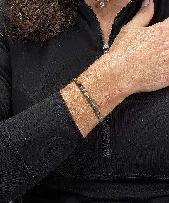 • CONTAINS: A gemstone beaded bracelet made with 4mm semi-precious beads packaged inside a protective cloth drawstring pouch.