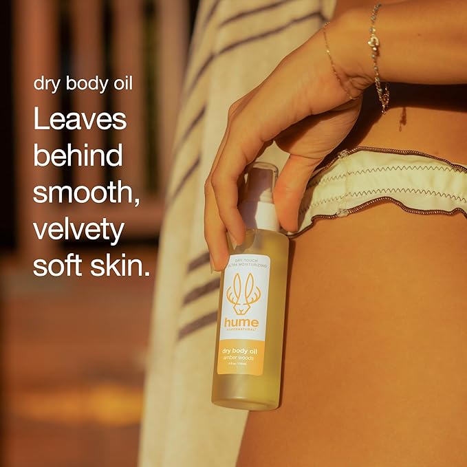 HUME SUPERNATURAL Dry Body Oil Spray - Ultra Hydrating Oil for Dry Skin, Light and Nourishing Body Oils for Women and Men, Long-Lasting Moisture (Amber Woods 1-Pack)