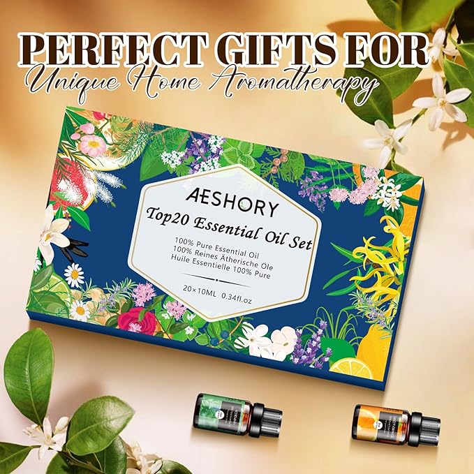 Essential Oils Set, 20x10ml Aromatherapy Essential Oil Kit for Diffuser, Humidifier, Massage, Skin & Hair Care - Lavender, Eucalyptus, Tea Tree, Sweet Orange, Lemongrass and Peppermint