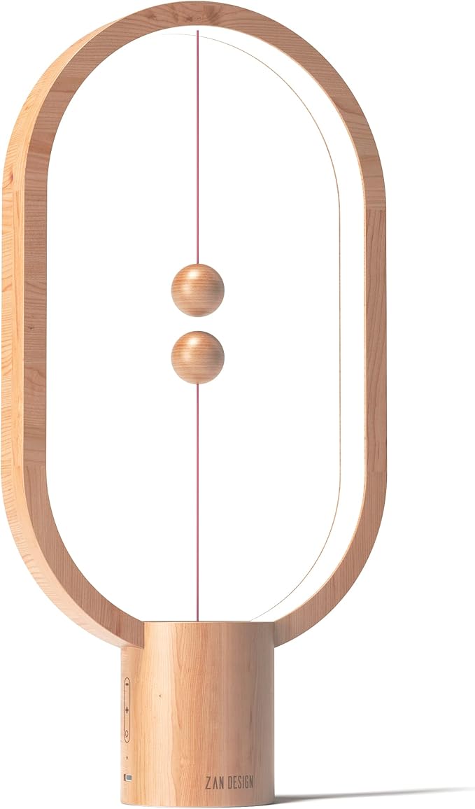 - Innovative magnetic balance lamp: This creative and modern table lamp is designed with a unique magnetic ball switch. Oval design, it embeds LED lighting components in the frame of ABS material, leaving a way out for lighting. The two balls act as switches and are charged by the USB port. After being fully charged, you can move the electromagnetic lamp at will without plugging in the cable. Please note that when the indicator light flashes, the desk lamp should be charged.