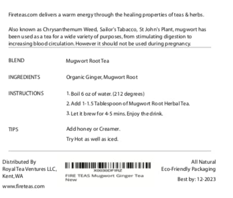 FIRE TEAS Mugwort Ginger Herbal Tea - Relaxant, Detoxifying, Helps Digestion - -