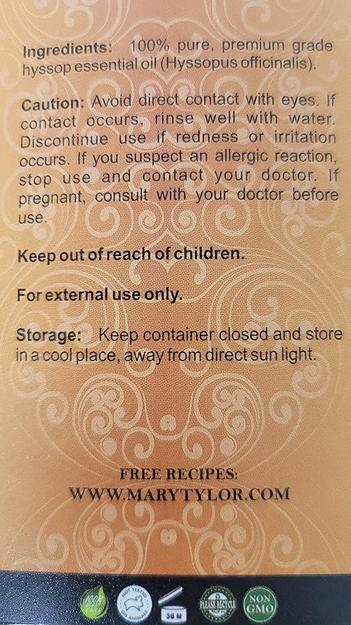 - PURE HYSSOP ESSENTIAL OIL: Free of any Additives and other Chemicals.
