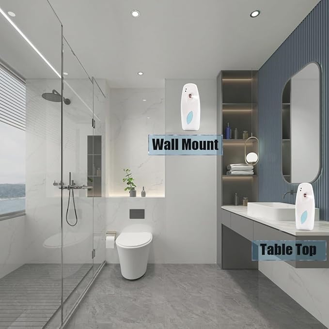 - ✮Wall mounted automatic air freshener:air freshener spray automatic can be mounted to wall, 7-9 feet above the floor; or put it standing on your bedroom desk, office table,automatic spray dispenser operation is very friendly.