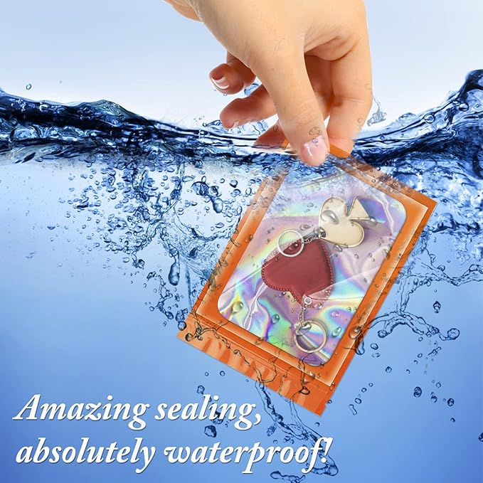 100 Pack Holographic Bags, Smell Proof Packaging Bags, Clear Window Resealable Odor Foil Pouch Mylar Bag for Food Storage and Lipgloss, Jewelry Lash (Orange, 2.4 x 3.9 Inch)