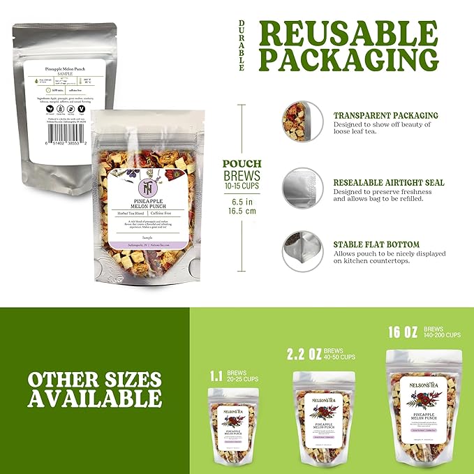 Nelson's Tea Pineapple Melon Punch - Caffeine Free, Cut & Sifted Rooibos Green Tea with Apple, Cranberry, Hibiscus, Marigod and Safflower Loose Leaf Tea (Sample 0.2 Oz)