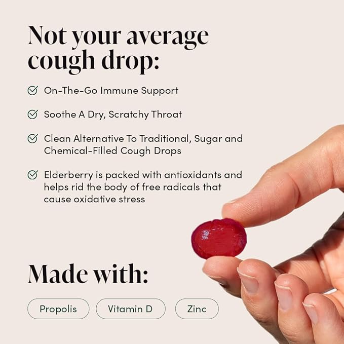 - NATURAL COUGH DROPS: Not your average cough drops, these honey lozenges are made with powerful ingredients, like raw honey, propolis, Vitamin D and zinc, that promote immune health while soothing dry, scratchy throats. (And they taste great, too.)