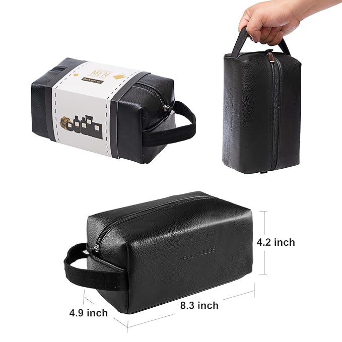 Bath and Body Spa Gift Baskets Set for Men - Sandalwood Amber - 7Pc Full Size Spa Kit in Toiletry Bag - Fathers Day Gifts For Husband, Dad From Wife, Daughter Son, Birthday Gifts For Him