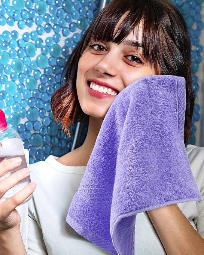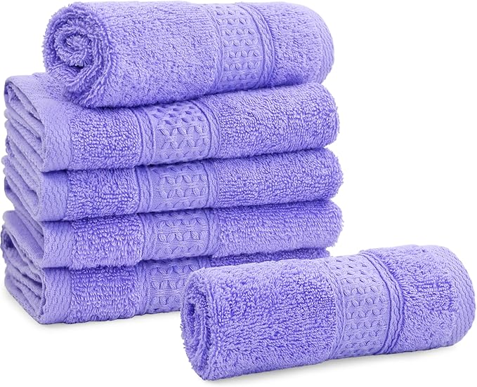 Cleanbear Wash Cloths Cotton Facecloths, Large Face Cloths 6 Ultra-Soft Washcloths for Bathroom and Guestroom, Fade-Resistant Face Towels 13 by 13 Inches (Lavender)