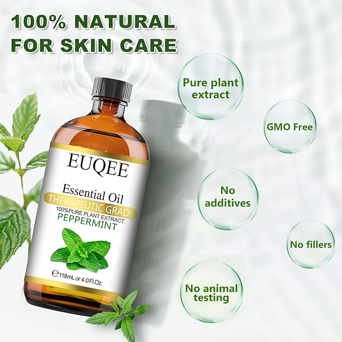 EUQEE Peppermint Essential Oil 118 ml Pure Peppermint Oil with Glass Dropper, Great for Aromatherapy, Diffuser, Soap Candle Making - 4Fl. Oz
