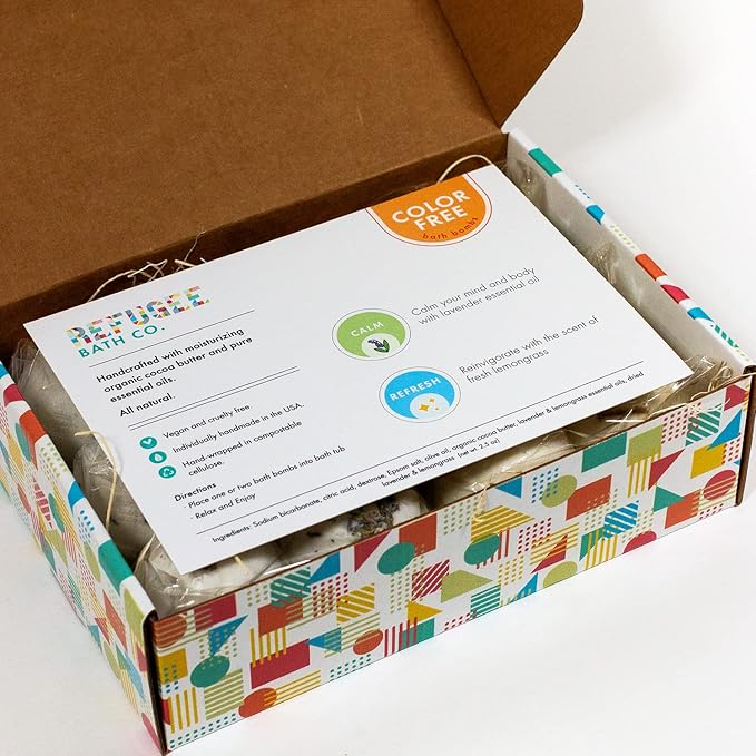 Variety Pack Bath Bombs, Color-Free Calm and Refresh Scents, 2.5 oz, Support Refugee Employment in The USA