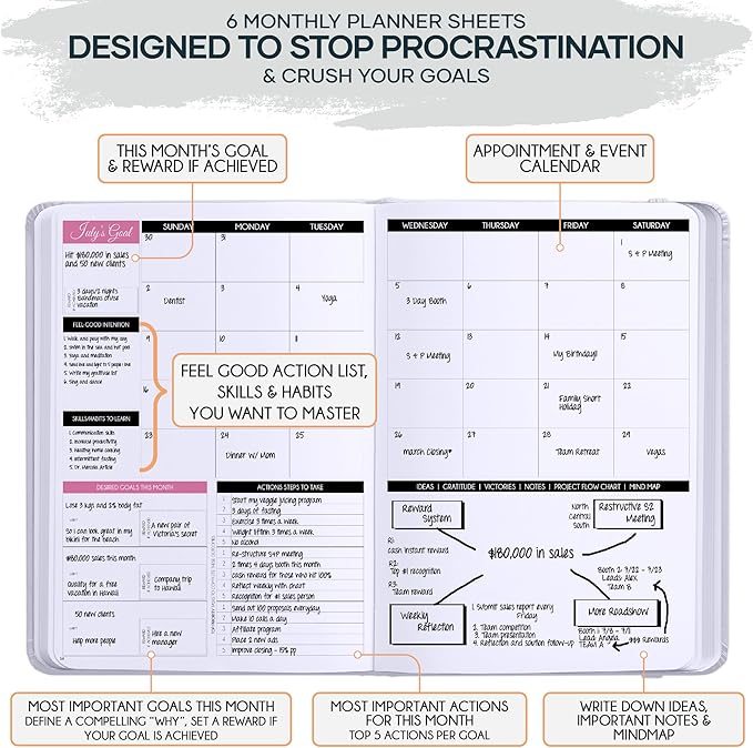 - GRATITUDE JOURNAL - This deluxe daily planner and gratitude journal for women comes in A5 size (5.8 x 8.3 inches). The life planner comprises 264 pages of thick 100 gsm paper, including 90 daily planning sheets, guiding you on how to become the best possible version of yourself on a mental, physical, and interpersonal level. It's a unique diary based on leading scientific studies proven to increase productivity and happiness. The journal features an out-foldable vision board to help you stay focused, morning and evening power questions, mind maps, reflection pages, habit trackers, a back pocket, and much more than any other planner on the market!