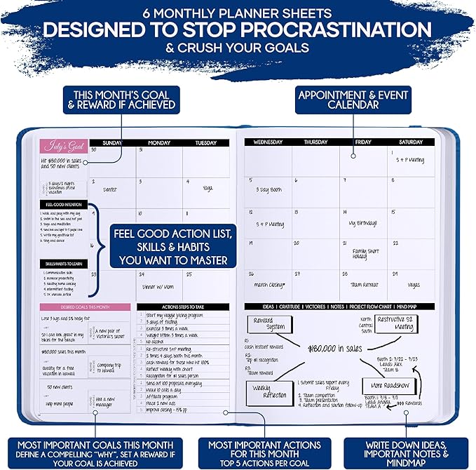 - SELF-CARE JOURNAL - This deluxe daily planner and self-care journal comes in A5 size (5.8 x 8.3 inches). The life planner comprises 264 pages of thick 100 gsm paper, including 90 daily planning sheets, guiding you on how to become the best possible version of yourself on a mental, physical, and interpersonal level. It's a unique diary based on leading scientific studies proven to increase productivity and happiness. The journal features an out-foldable vision board to help you stay focused, morning and evening power questions, mind maps, reflection pages, habit trackers, a back pocket, and much more than any other planner on the market!