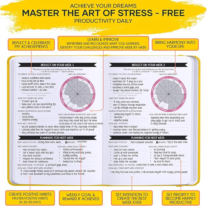 - LUXURIOUS AND TOP QUALITY - Self-care journal for women and men, perfect for entrepreneurs, professionals, college students and everyone who has burning desire to turn dreams into reality! FREE VIDEO MINI-COURSE: You will learn 10-min morning routine used by the most successful people to 10-fold your productivity, focus, happiness & passion! You will master setting goals & fix procrastination!