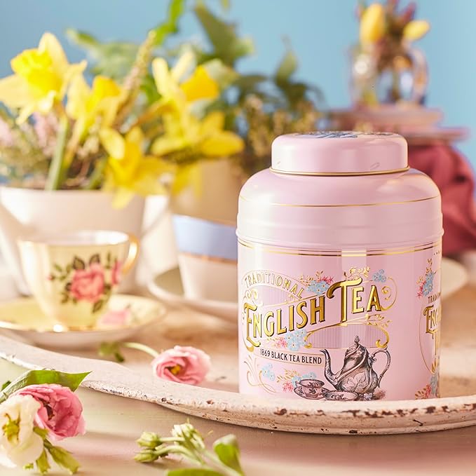 New English Teas Vintage Victorian Tea Caddy with 80 English Teabags (Rose Pink)