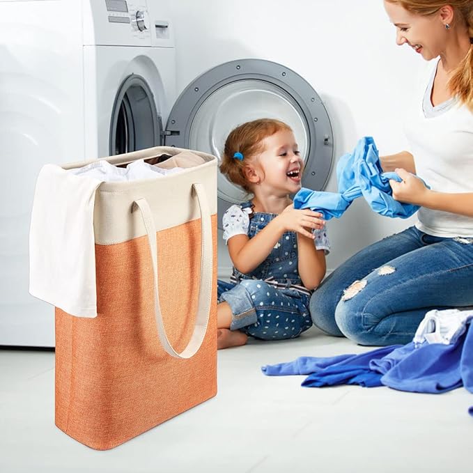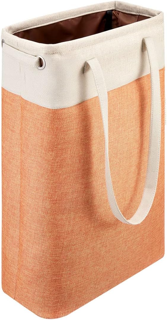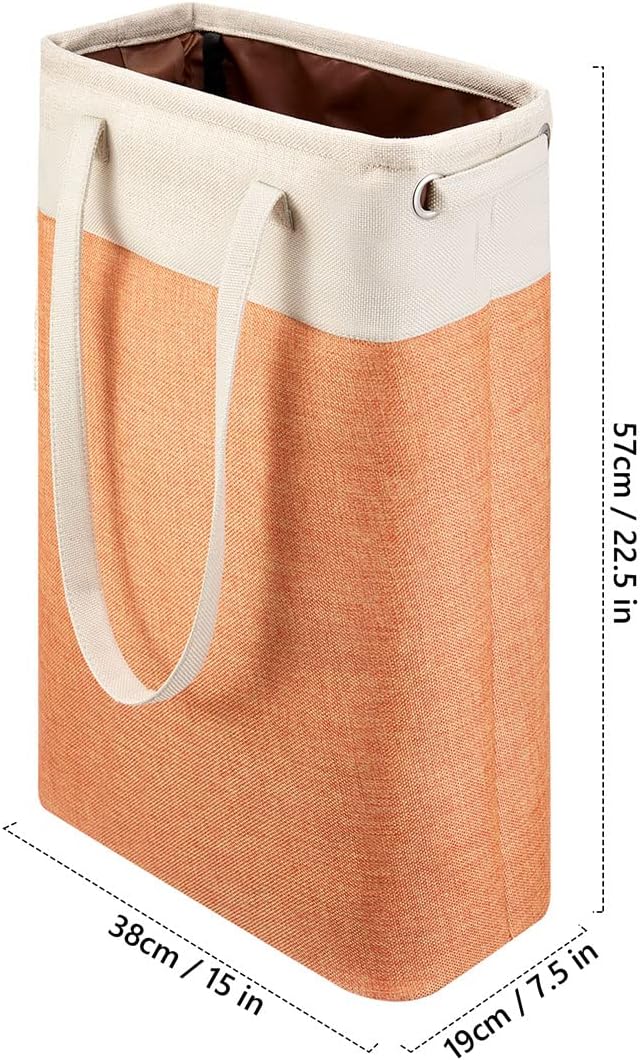 i BKGOO Laundry Basket with Handles Beige&Orange Slim Laundry Bin Collapsible Dirty Clothes Basket Narrow Laundry Bag Foldable Dirty Hamper for Camping, Dorms, Apartments